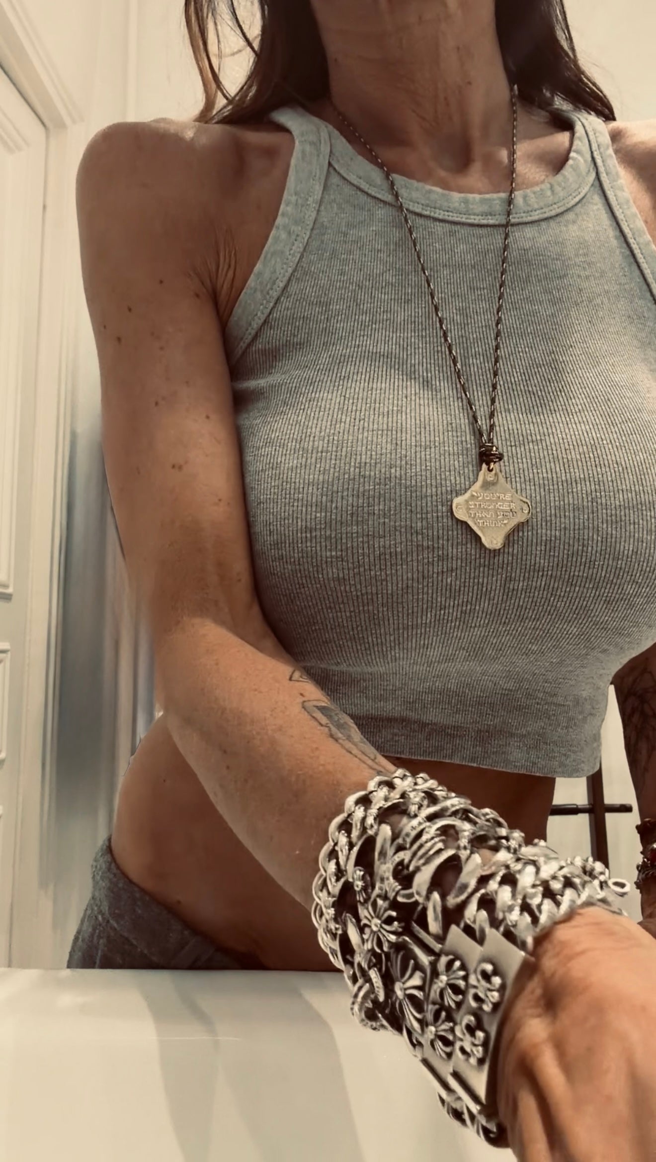Engraved on the back of the pendant, this mantra is a constant reminder, resting against you.