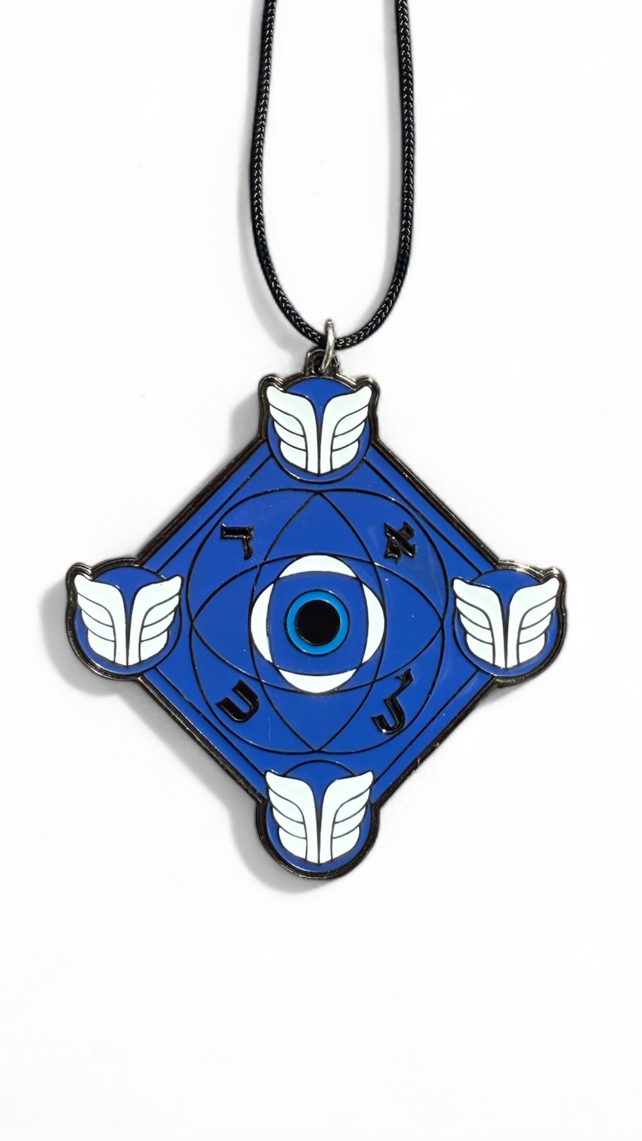 En sus cuatro esquinas, cuatro escudos sellan tu aura y reflejan la luz azul de la Palabra eterna.
